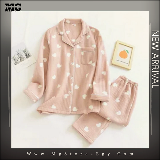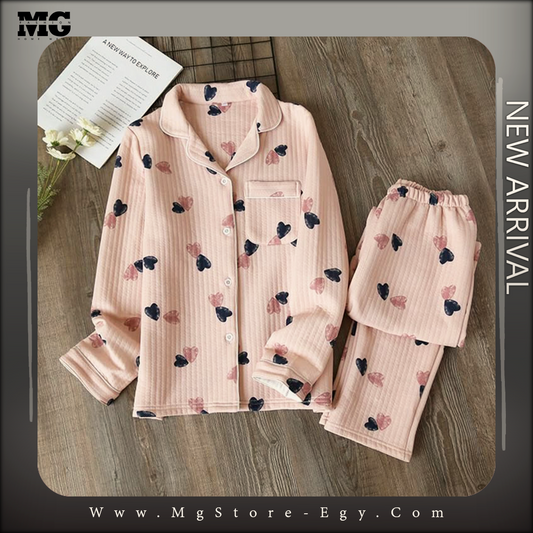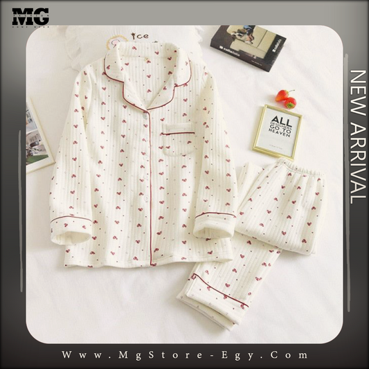 بيجامه شتوي قلوب ابيض