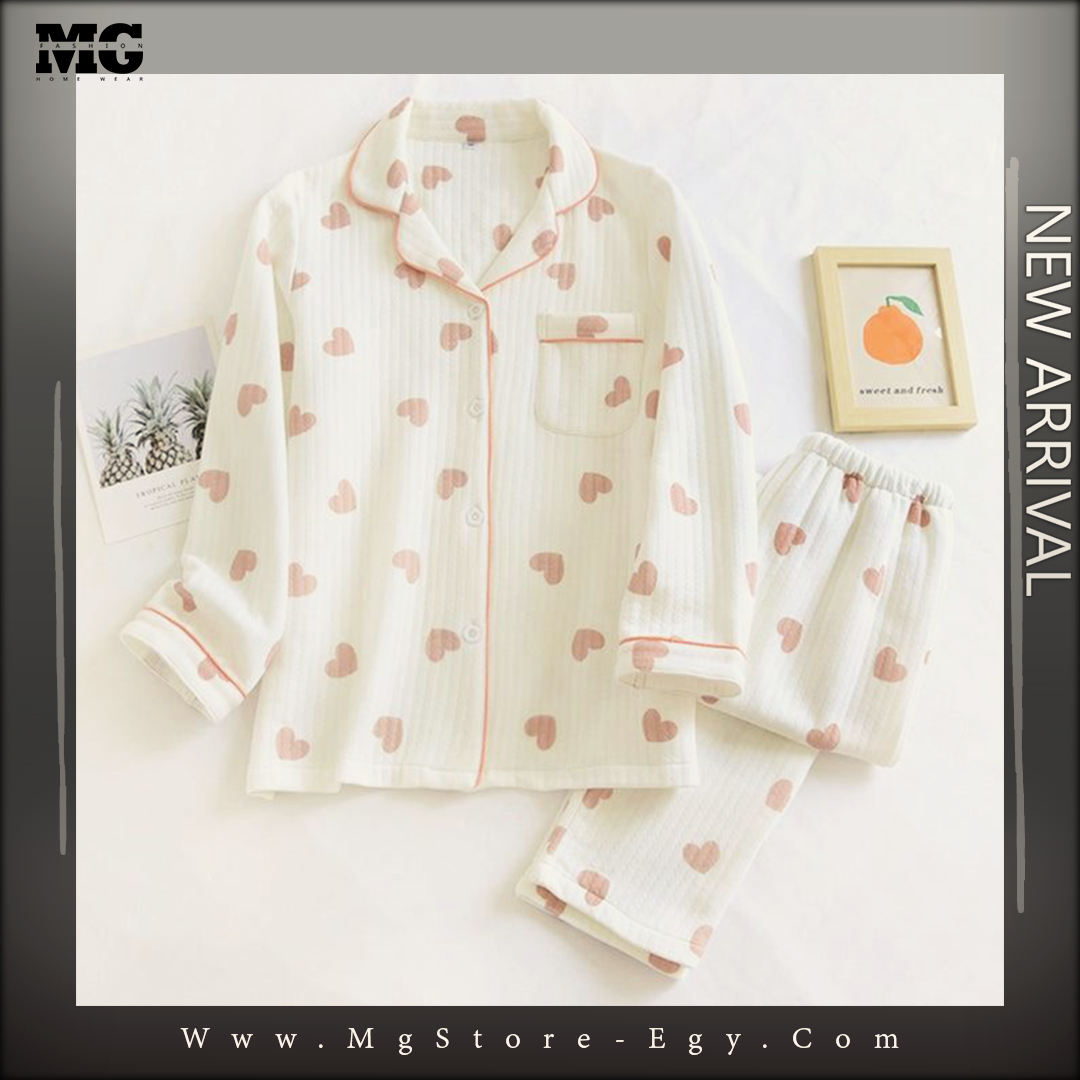 بيجامه شتوي قلوب ابيض
